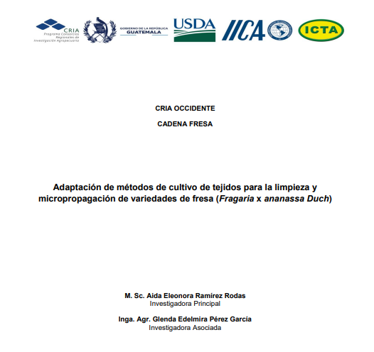 El cultivo de fresa en Guatemala enfrenta graves problemas fitosanitarios por el hongo Neopestalotiopsis clavispora, lo que hace necesario implementar técnicas de cultivo in vitro para obtener plantas libres de patógenos. La investigación se centró en adaptar protocolos de micropropagación a partir de ápices meristemáticos, evaluando combinaciones hormonales para el desarrollo y enraizamiento de variedades de fresa. Se empleó el medio Murashige & Skoog (MS) y se obtuvieron respuestas significativas en las variedades Festival y San Andreas. Festival mostró mejores resultados con BAP + IBA + GA₃ (1.0 mg/l + 0.1 mg/l + 0.05 mg/l) y enraizó con IBA + BAP (0.2 mg/l + 0.1 mg/l). San Andreas presentó mayor brotación con BAP + IBA + GA₃ (0.5 mg/l + 0.025 mg/l + 0.05 mg/l) y enraizó con la misma combinación de IBA + BAP. Ambas variedades alcanzaron un 100% de sobrevivencia en trasplante a invernadero, y las pruebas de patogenicidad confirmaron la eliminación del hongo en el material propagado.