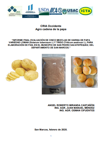 Informe final Evaluación de cinco mezclas de harina de papa variedad Loman (Solanum tuberosum l.) y trigo (Triticum aestivum I.), para la elaboración de pan, en el municipio de San Pedro Sacatepéquez, del departamento de San Marcos Compartir Report uri icon