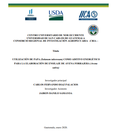 - El objetivo de esta investigación fue validar el uso de papa (cocida y cruda) como aditivo energético en el ensilaje de avena forrajera. El estudio se realizó en Chiantla, Huehuetenango, de abril a noviembre de 2019. La metodología implicó la evaluación de diferentes tratamientos: T1 (ensilaje de avena con papa cruda al 20%), T2 (ensilaje de avena con papa cocida al 20%), T3 (ensilaje de avena con melaza al 5%) y un testigo (avena sin aditivos). Se analizó la composición bromatológica del ensilaje resultante. Los resultados mostraron que el ensilaje con papa cocida obtuvo la mayor digestibilidad y contenido de proteína cruda. La adición de papa mejoró la calidad nutricional del forraje. Se concluyó que la papa, especialmente cocida, es un aditivo energético viable para el ensilaje de avena, proporcionando una alternativa alimenticia de calidad para el ganado en la región.
