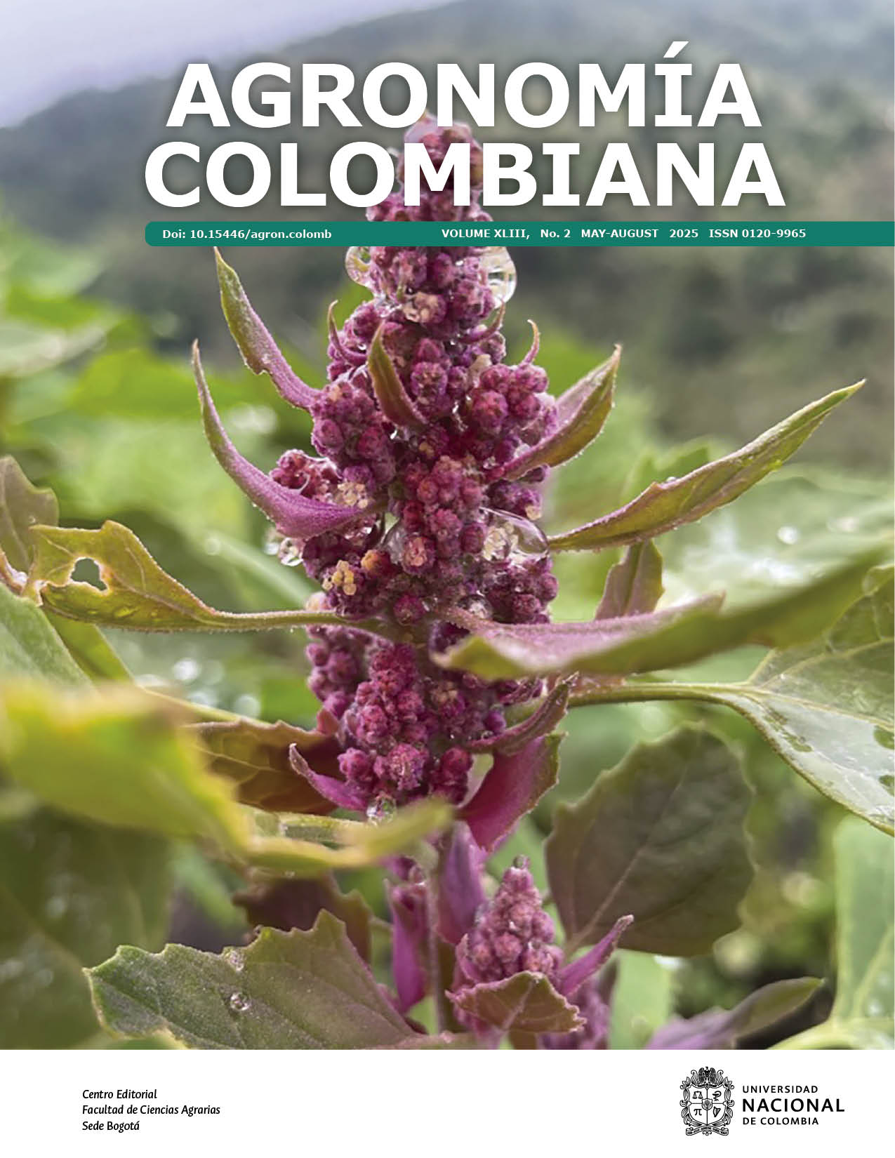 - La quinua (Chenopodium quinoa Willd.) destaca por su valor nutricional y adaptabilidad agroecológica y la posiciona como un cultivo estratégico en mercados especializados. En Colombia, su consolidación en zonas altoandinas exige la identificación de genotipos mejorados con alto rendimiento y calidad de grano. El objetivo de esta investigación fue caracterizar agronómicamente 14 familias mejoradas de quinua dulce, incluida la familia San Jorge y tres testigos comerciales (Aurora, Blanca de Jericó y Tunkahuan) en condiciones del municipio de Silvia (Cauca, Colombia), mediante un diseño de bloques completamente aleatorizado con cuatro repeticiones. Se evaluaron 11 variables morfoagronómicas y se aplicaron análisis estadísticos de ANOVA, prueba de Duncan (P<0.05), análisis de componentes principales (ACP), análisis de conglomerados jerárquicos e índice de selección. Los resultados evidenciaron una alta variabilidad entre genotipos. El mayor rendimiento por hectárea y por planta fue registrado por el genotipo F56 (6623,1 kg ha-1 y 30,33 g), seguido del genotipo FSJ. F25 destacó por el mayor peso de mil semillas (3,13 g) y F38 presentó el mayor diámetro de grano (2,38 mm). Aurora, testigo comercial, exhibió la mayor altura de planta (132,4 cm) y longitud de panoja (53,9 cm), mientras que F56 y F37 registraron los valores más altos en diámetro de panoja (68,79 mm) y de tallo (16,5 mm), respectivamente. El ACP explicó el 65,21% de la variabilidad total, resaltando a F56, FSJ, Aurora y Blanca de Jericó como los genotipos de mayor contribución. Las variables más influyentes fueron altura de planta, rendimiento y peso de mil semillas. El análisis de agrupamiento clasificó los 17 genotipos en tres grupos: el grupo uno (Aurora y Blanca de Jericó), caracterizado por arquitectura robusta; el grupo dos (Tunkahuan), con características intermedias; y el grupo tres (resto de los genotipos mejorados), con alta eficiencia productiva y atributos de calidad. Finalmente, el índice de selección permitió identificar genotipos con alto potencial productivo y calidad física del grano, proponiendo a F56 y FSJ como candidatos clave para futuros programas de mejoramiento y validación en zonas altoandinas.