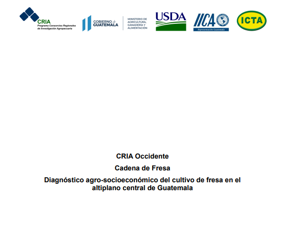 - El propósito del presente estudio fue generar información agro-socioeconómica y de la problemática actual del cultivo de fresa. El estudio se centró en un diseño de diagnóstico exploratorio con enfoque en sistema de finca, para ello se seleccionaron variables que permitieran la caracterización del productor y su sistema de producción. Para obtener la información se realizaron sondeos a nivel de actor y de agricultor, seguido de una encuesta a nivel hogar a 202 productores de fresa. Los resultados describen que la producción se concentra en siete municipios de Chimaltenango. Las características socioeconómicas de los productores los describen como adultos jóvenes (38 años), hombres, con educación primaria y experiencia en el cultivo entre uno a cinco años en promedio. El promedio del área de siembra es de 0.51 hectáreas y la variedad más cultivada es Festival. El nivel tecnológico en la producción se basa en bajo uso de estructuras de protección y de maquinaria; alto uso de fertilizantes, plaguicidas y riego. Entre las principales problemáticas identificadas están, el bajo acceso a semillas de buena calidad, condiciones desfavorables de manejo por eventos del clima que favorecen el desarrollo de plagas y enfermedades, donde sobresale la Neopestalotiopsis. Estos problemas se incrementan debido al alto costo de insumos y el poco acceso a asistencia técnica. Es así como para favorecer el desarrollo del cultivo en el país, se deben de invertir en el desarrollo de tecnologías y métodos de producción, así como en los recursos asociados a ellos en términos de crédito, capacitación y comercialización.