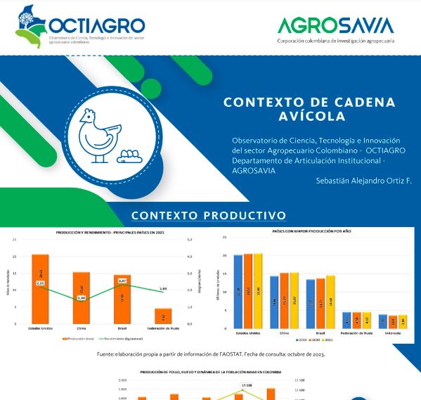 - En esta ficha de contexto se mencionan los aspectos importantes de la cadena de avícola enfocados a su marco productivo, regional, económico, comercio internacional, así como sus perspectivas y tendencias frente al mercado, dando a conocer su entorno de Ciencia y Tecnología e Innovación.