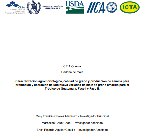 - El grano de maíz juega un papel importante en muchos de los platillos guatemaltecos, sin embargo, la tortilla es la forma principal de consumo. El 90% de la producción total de maíz es de grano blanco y un 10% de grano amarillo, sin embargo, existe una alta demanda de maíz amarillo, principalmente por la industria la cual importa un 87% del maíz que utilizan para la elaboración de alimentos para consumo humano y animal. El ICTA desde la década de los 90 no había centrado sus esfuerzos para disponer una nueva variedad con mejor rendimiento y mejores características agronómicas que ICTA A-6, es por ello que el Programa de Maíz del ICTA trabajó en la selección de cinco variedades de grano amarillo, las cuales fueron validadas en fincas de agricultores por el Programa de Validación y Transferencia de Tecnología. Cuando estas variedades estaban en ensayos de finca, el Programa de Tecnología de Alimentos del ICTA determinó la calidad de grano dichas variedades de grano amarillo donde se determinó que las variedades presentan adecuada calidad para el uso en la industria. Las variedades que pasaron a parcelas de prueba (ICTA SIAM-01 e ICTA SIAM-05) fueron caracterizadas por el Programa de maíz con el fin de registrar una variedad en el MAGA. Y la segunda fase consistió producir semilla para la liberación de la nueva variedad, evento que se realizó en ICTA San Jerónimo en octubre 2024, se entregaron 594 bolsas de 10 libras de la variedad que superó la fase de validación en parcelas de prueba (ICTA SIAM-05) la cual fue nombrada como ICTA Suprema, esto benefició a más de 500 agricultores del trópico bajo de Guatemala.