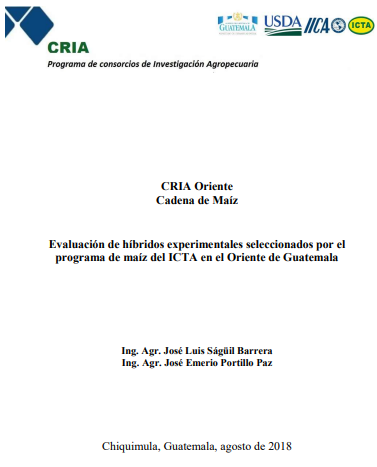 - Este estudio evaluó diez híbridos experimentales de maíz y un testigo comercial (ICTA HB-83) en Chiquimula y Zacapa, Guatemala. El objetivo fue identificar un híbrido con rendimiento de grano superior y buena adaptación a la región oriental. Se utilizó un diseño de bloques completos al azar con tres repeticiones por localidad. Los resultados no mostraron diferencias estadísticas significativas en el rendimiento de grano (3.6 a 4.7 t/ha) ni de biomasa (4.9 a 6.3 t/ha) entre los híbridos experimentales y el testigo. Se concluyó que ninguno de los híbridos experimentales superó al testigo comercial, aunque mostraron buena adaptación.