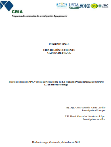 - El estudio tuvo como objetivo evaluar el impacto de diferentes densidades de siembra en el rendimiento del frijol arbustivo ICTA Hunapú precoz en el altiplano de Huehuetenango, Guatemala. La metodología consistió en un diseño experimental de bloques al azar trifactorial con 27 tratamientos, que combinaban distancias entre surcos (50, 40, 30 cm), distancias entre posturas (40, 30, 20 cm) y número de granos por postura (2, 3, 4). Los resultados mostraron que seis arreglos topológicos fueron estadísticamente superiores en rendimiento a la recomendación actual. El análisis económico identificó que la combinación de 30 cm entre surco, 30 cm entre postura y 3 granos por postura, fue la mejor opción, presentando una tasa marginal de retorno a capital del 90%.