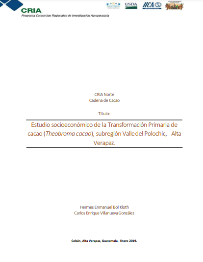 Este estudio analizó el proceso de transformación primaria (TP) del cacao en el Valle del Polochic, Alta Verapaz, Guatemala, enfocándose en las etapas, recursos, costos, tiempos y la participación por género y edad. Se trabajó con 82 familias productoras mediante un enfoque metodológico mixto (cuantitativo-cualitativo), utilizando entrevistas, recorridos transectos y talleres participativos. Los resultados identificaron dos etapas clave en la TP: cosecha y extracción (Etapa I), y lavado, secado y almacenamiento (Etapa II). El proceso dura aproximadamente 7 meses, con participación familiar integral, destacando la necesidad de mejorar técnicas y organización para optimizar la calidad del grano y los beneficios económicos.
