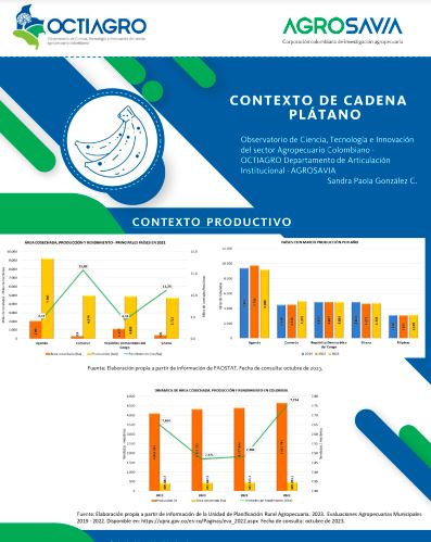 - En esta ficha de contexto se mencionan los aspectos importantes de la cadena de plátano enfocados a su marco productivo, regional, económico, comercio internacional, así como sus perspectivas y tendencias frente al mercado, dando a conocer su entorno de Ciencia y Tecnología e Innovación.