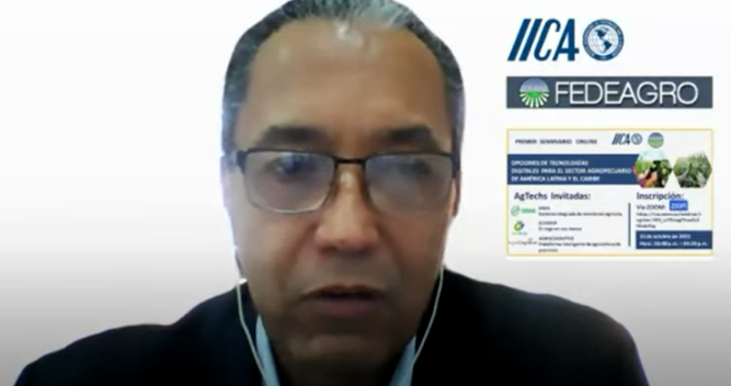 Este es el primer seminario de dos seminarios , acerca de tecnologías digitales para el sector agropecuario en América Latina y el Caribe organizado en el marco de cooperación entre el IICA y FEDEAGRO. Rofolfo Fernández explica que el tema de la aplicación de las tecnologías digitales en la agricultura tiene una gran importancia para el IICA, desafío que se asume como la transformación digital agroalimentaria, para tal fin, se plantea la adopción de una mirada transdisciplinaria para el sector de la agricultura, las cadenas de valor y los territorios rurales, abriendo un amplio campo a la cooperación técnica para la búsqueda de senderos, por medio de los cuales poder adelantar procesos de transformación digital y acercar las innovaciones digitales a las demandas de las tecnologías de los sectores.