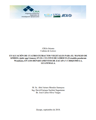 Evaluación de cuatro extractos vegetales para el maejo de áfidos (Aphis spp Linneo), en el cultivo de loroco (Fernaldia pandurata Woodson), en los departamentos de Zacapa y Chiquimula, Guatemala Report uri icon