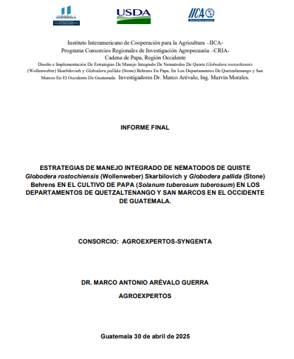 Informe final Estrategias manejo integrado de nematodos de quiste Globodera rostochiensis (Wollenweber) Skarbilovich (nematodo dorado) y Globodera pallida (Stone) Behrens (nematodo del quiste blanco) en el cultivo de papa (Solanum tuberosum) en los departamentos de Quetzaltenango y San Marcos en el occidente de Guatemala