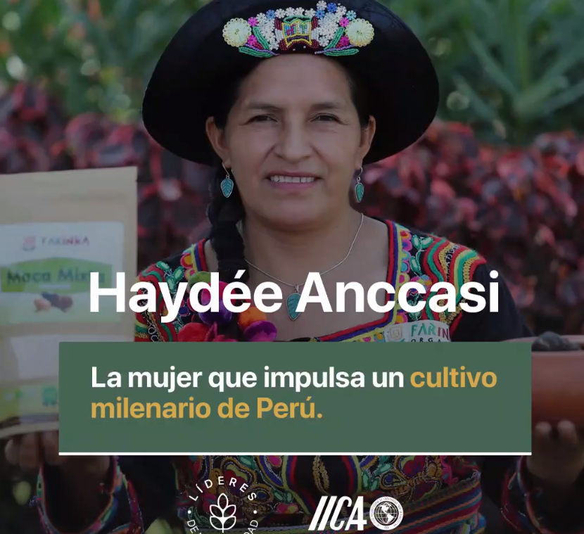 Haydée Anccasi es la fundadora de Farinka Organics, una empresa que impulsa la maca, un cultivo milenario que tiene un gran potencial en todo el mundo y que crece solo en los Andes centrales, a más de 4000 metros de altura, en Perú. Gracias a su trabajo, dedicación y orgullo por sus raíces, Haydée es una de las #LíderesDeLaRuralidad 2022 reconocidas por el IICA por cambiar el paradigma en su país y ayudar a mantener la seguridad alimentaria y nutricional.