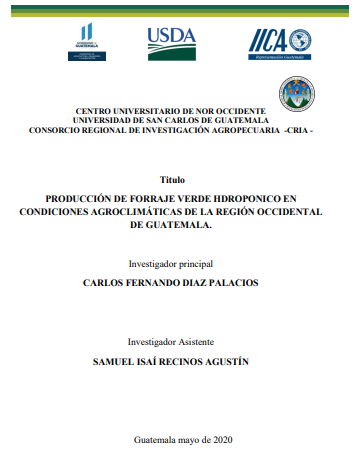 - El objetivo de este estudio fue validar la producción de forraje verde hidropónico (FVH) en las condiciones agroclimáticas del altiplano occidental de Guatemala, para ofrecer una alternativa alimenticia sostenible para el ganado ante la escasez de forraje y la disminución de fuentes de agua. La metodología incluyó la construcción y entrega de estructuras para FVH a productores, seguido de capacitación en el proceso de producción y manejo de este tipo de forraje. Se monitoreó el crecimiento y la producción del FVH en las fincas de los participantes. Los resultados demostraron que el FVH es una solución viable y económica, con una inversión inicial de Q1,500 y un costo de producción de Q0.50 por libra. Esta tecnología permitió a los productores obtener forraje fresco continuamente, mejorando la alimentación del ganado. Se concluyó que la producción de FVH es una alternativa sostenible para garantizar la disponibilidad de alimento para el ganado, adaptándose a las condiciones locales y contribuyendo a la seguridad alimentaria.