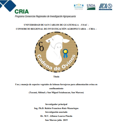 - El objetivo fue identificar el uso y manejo de especies vegetales leñosas forrajeras para la alimentación ovina en confinamiento en Tacaná, Sibinal y San Miguel Ixtahuacán, San Marcos. La metodología se basó en una encuesta a 599 productores sobre la disponibilidad, época de uso, y cantidad de forraje disponible de especies leñosas, así como sus propiedades y la presencia de sustancias tóxicas. Los resultados revelaron que la mayoría de los productores utilizan estas leñosas principalmente como suplemento en época seca. Se identificaron varias especies utilizadas, pero con deficiencias en su manejo. Se concluyó que existe un gran potencial para el uso de leñosas forrajeras, sin embargo, se necesita capacitación para el manejo adecuado y el establecimiento de bancos forrajeros, así como estudios sobre su valor nutricional.