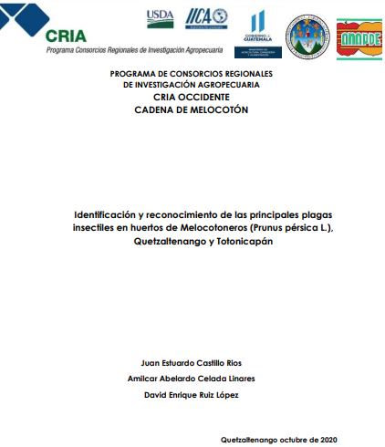 - El objetivo principal del estudio fue identificar y reconocer las principales plagas insectiles que afectan los huertos de melocotón (Prunus persica L.) en Quetzaltenango y Totonicapán. La metodología implicó la recolección de insectos mediante la técnica de muestreo en campo y el procesamiento de las muestras en laboratorio. Se utilizaron trampas de diferentes tipos y atrayentes para la captura de insectos. Los insectos recolectados fueron enviados al laboratorio oficial del Ministerio de Agricultura, Ganadería y Alimentación (MAGA) para su análisis e identificación. Los resultados detallaron la presencia de diversas órdenes de insectos, incluyendo Hemípteros (con familias como Tingidae, Diaspididae y Aphididae), Dípteros (con énfasis en la familia Tephritidae, a la que pertenecen las moscas de la fruta), y Himenópteros, donde muchas avispas son parasitoides o depredadores de insectos dañinos. En conclusión, el estudio permitió el reconocimiento de las principales plagas insectiles en los huertos de melocotoneros de las regiones de Quetzaltenango y Totonicapán, lo cual es fundamental para establecer estrategias de manejo integrado de plagas.