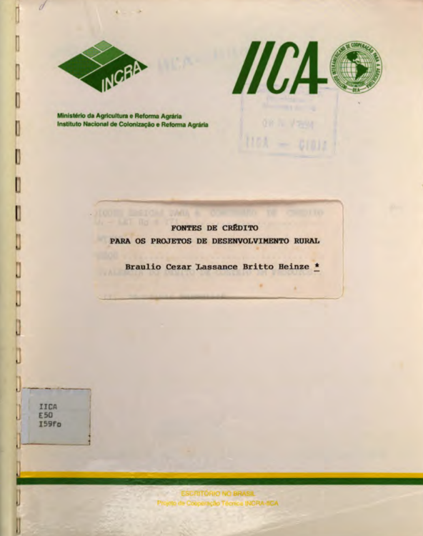 Se trata de las fuentes y normas de crédito que contienen varios aspectos de cómo se desenvuelve el Sistema Nacional de Crédito Rural (SNCR), para que basados en esta información y debidamente orientados por los técnicos del Convenio IICA/INCRA, los productores rurales puedan encontrar soluciones para dinamizar el proceso de desarrollo de los proyectos de asentamiento de reforma agraria.