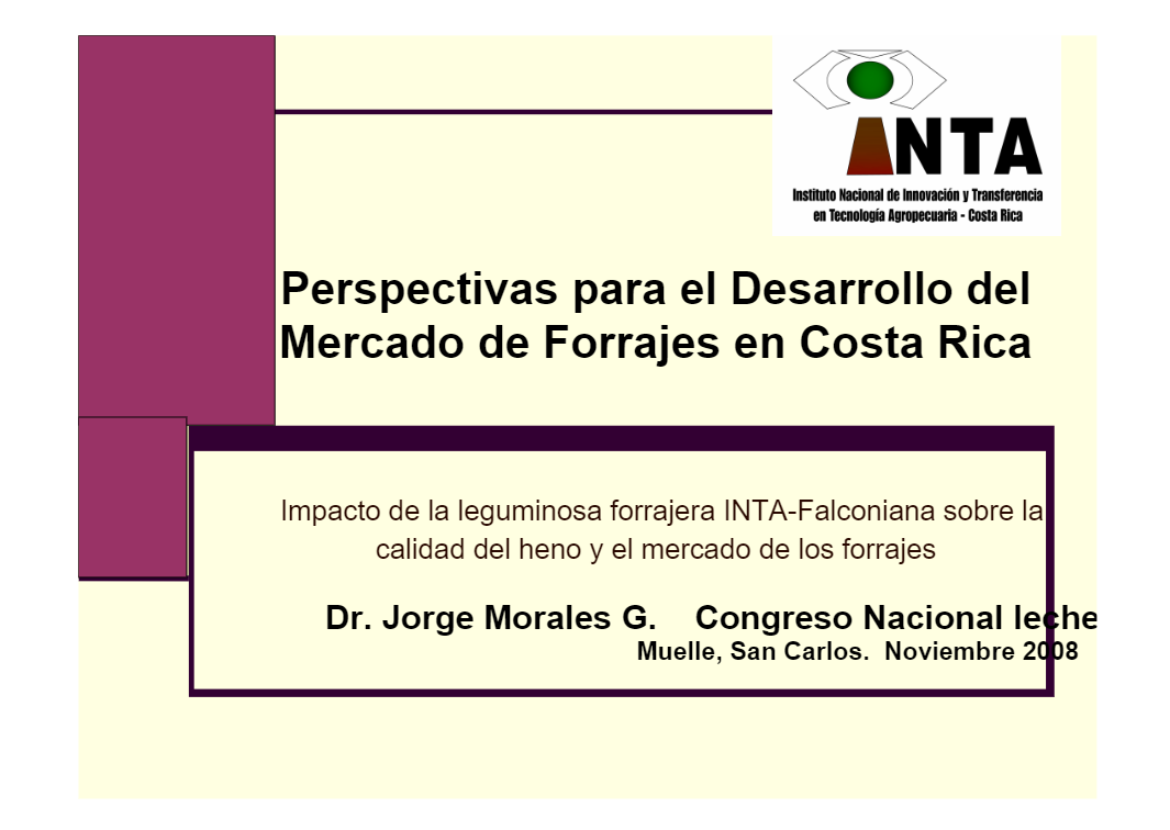 Perspectivas para el desarrollo del mercado de forrajes en Costa Rica: Impacto de la leguminosa forrajera INTA-Falconiana (Arachis sp. CIAT 18744 A) sobre la calidad del heno y el mercado de los forrajes en Costa Rica.