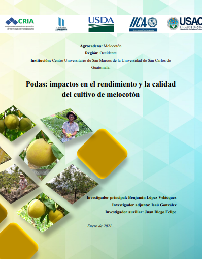 - El objetivo de esta investigación fue evaluar el impacto de diferentes tipos de poda en el rendimiento y la calidad del cultivo de melocotón en el altiplano de San Marcos. La metodología consistió en establecer parcelas experimentales con tres tratamientos de poda (severa, media y testigo sin poda) y tres tipos de floración (natural, anticipada con anillado y anticipada con hormonas). Se evaluó el rendimiento en quintales por manzana, el diámetro y peso de los frutos, y el control de enfermedades y plagas. Los resultados mostraron que la poda severa y la floración anticipada con anillado tuvieron un impacto positivo en el rendimiento y el tamaño de los frutos. Además, se observó que los árboles con poda severa presentaban menor incidencia de enfermedades. Se concluyó que las podas, especialmente la severa, combinadas con técnicas de floración anticipada, son prácticas que mejoran la productividad y calidad del melocotón, además de favorecer el control de enfermedades. Estas técnicas son recomendables para optimizar la producción en la región.