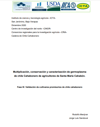 - El estudio tuvo como objetivo validar cultivares promisorios de chile cahabonero (Capsicum annuum L.) en Santa María Cahabón, Alta Verapaz, para su posterior difusión entre los agricultores. La metodología se centró en la evaluación de la amplia diversidad genética de chile cahabonero para identificar materiales con rendimiento estable y adaptabilidad a las condiciones climáticas de la región. Los resultados obtenidos permitirán recomendar materiales genéticos que optimicen la producción del cultivo.