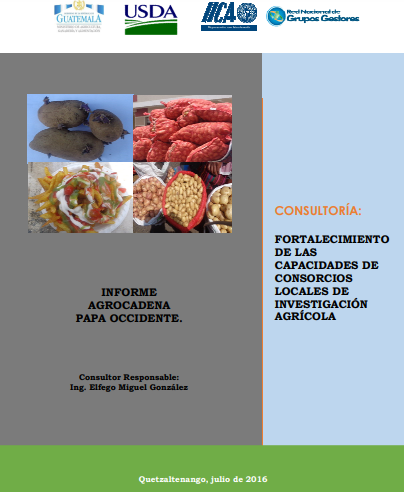 - El informe presenta los hallazgos de la agrocadena de la papa en Guatemala, identificados por la Red Nacional de Grupos Gestores en el proyecto CRIA. El objetivo principal fue fortalecer e integrar consorcios de instituciones de investigación con actores de la cadena de valor. La metodología se basó en la consulta con actores clave, incluyendo mapeo de actores, visitas, entrevistas y talleres para identificar puntos críticos y temas de investigación. Los resultados destacaron factores que limitan la competitividad de la agrocadena y priorizaron temas para proyectos de investigación, buscando mejorar la producción y el mercado de la papa.