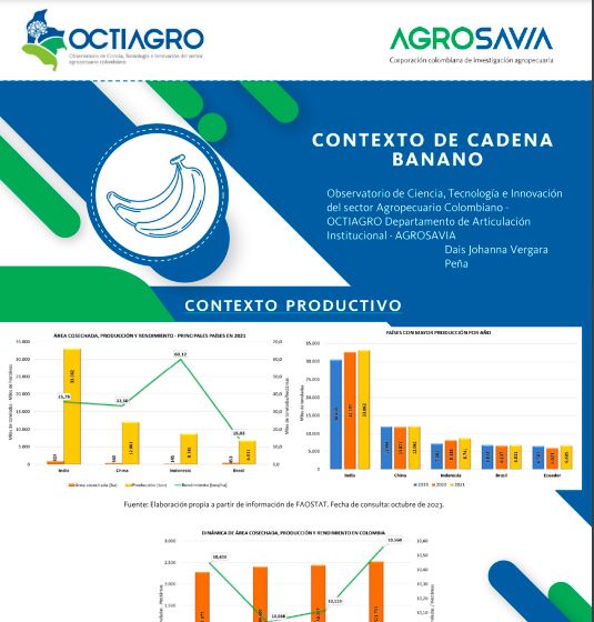 - En esta ficha de contexto se mencionan los aspectos importantes de la cadena de banano enfocados a su marco productivo, regional, económico, comercio internacional, así como sus perspectivas y tendencias frente al mercado, dando a conocer su entorno de Ciencia y Tecnología e Innovación.