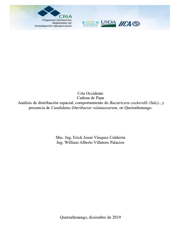 - El estudio analizó la distribución espacial y el comportamiento de Bactericera cockerelli y Candidatus Liberibacter solanacearum en cultivos de papa en Quetzaltenango, Guatemala, utilizando herramientas GIS y PCR. El objetivo fue establecer patrones de comportamiento y distribución de la plaga y la bacteria durante las épocas de invierno y verano. Los resultados mostraron que Bactericera cockerelli prefiere la época de verano, con un aumento de las poblaciones en comparación con el invierno. Los psílidos adultos se ubican principalmente en la parte alta de la planta, en temperaturas promedio de 16.8°C y 64% de humedad relativa. La oviposición ocurre principalmente en los estratos alto y medio de la planta. Se concluyó que la estacionalidad influye en la población del vector y que los psílidos adultos muestran preferencia por los estratos altos y medios de la planta para oviposición y alimentación.