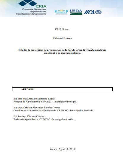 - Este estudio se centró en investigar técnicas de preservación para la flor de loroco (Fernaldia pandurata Woodson) y evaluar su mercado potencial. La metodología incluyó la evaluación de diferentes métodos de conservación y la realización de encuestas para determinar la demanda y preferencias del mercado. El objetivo principal fue identificar técnicas de preservación efectivas y entender las oportunidades comerciales. Los resultados aportaron información clave sobre métodos de conservación viables y el potencial de mercado para el loroco preservado.