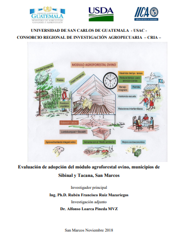 - El objetivo fue evaluar la adopción de un módulo agroforestal ovino por productores en Sibinal y Tacaná, San Marcos, buscando integrar la producción pecuaria con recursos forestales para mejorar la sostenibilidad y los ingresos. La metodología implicó encuestas a 200 productores para analizar factores técnicos, socioeconómicos y de producción relacionados con la adopción del módulo, que incluye árboles forrajeros, pastos, manejo integrado de residuos y producción de abono. Los resultados mostraron que el 60% de los productores encuestados adoptaron total o parcialmente el módulo. Se observó una correlación positiva entre la adopción y la reducción del tiempo dedicado al cuidado de ovinos, el manejo de residuos vegetales y la elaboración de abono orgánico. Se concluyó que el módulo agroforestal es una alternativa viable para los ovinocultores, mejorando la eficiencia y la rentabilidad al integrar diversas prácticas productivas y ambientales.