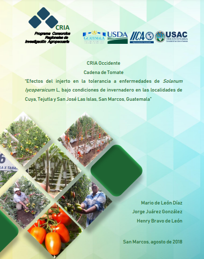 - El presente documento detalla la investigación sobre los efectos del injerto en la tolerancia a enfermedades del tomate (Solanum lycopersicum L) bajo condiciones de invernadero en San Marcos, Guatemala. El objetivo principal fue evaluar el impacto del injerto en la tolerancia a enfermedades, específicamente a Ralstonia solanacearum, y su influencia en el rendimiento y calidad del fruto. La metodología incluyó el establecimiento de parcelas con diferentes tratamientos de injerto y la recolección de datos sobre incidencia de enfermedades, desarrollo vegetativo y rendimiento. Los resultados mostraron que el injerto es una técnica prometedora para aumentar la tolerancia a enfermedades y mejorar la producción de tomate.