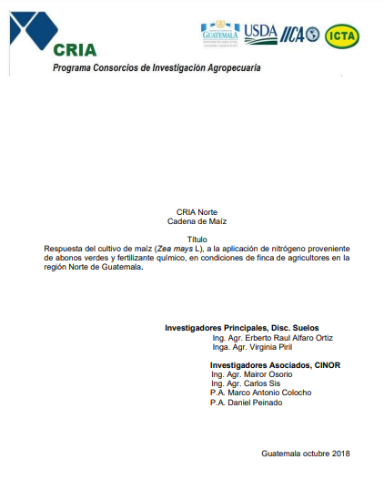 - El objetivo de este proyecto fue evaluar el efecto del abono verde (leguminosa) combinado con diferentes dosis de fertilizante químico nitrogenado, en el rendimiento de la variedad de maíz ICTA B-7. La investigación se llevó a cabo en seis localidades ubicadas en Ixcán, Fray Bartolomé de las Casas y Panzós. Se utilizó un diseño experimental de bloques completos al azar, con los tratamientos en arreglo de parcelas divididas. Se evaluaron los métodos de aplicación del abono verde y las dosis de fertilizante químico nitrogenado. Se encontró una diferencia altamente significativa en la altura y el rendimiento del grano de maíz debido al efecto del uso y método de aplicación del abono verde, y también hubo diferencias estadísticas entre las localidades. Sin embargo, no se encontró diferencia significativa en las dosis de fertilizante químico nitrogenado ni en la interacción abono verde-dosis de fertilizante químico nitrogenado. En conclusión, el uso de abono verde influyó significativamente en el rendimiento del maíz, pero las dosis de fertilizante químico nitrogenado no mostraron un efecto significativo.