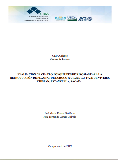 - Este estudio evaluó cuatro longitudes de rizomas para la reproducción de plantas de loroco en fase de vivero en Chispán y Estanzuela, Zacapa. La metodología consistió en sembrar rizomas de diferentes longitudes y medir el porcentaje de brotación a los 60, 75 y 90 días. El objetivo principal fue determinar la longitud de rizoma más efectiva para la propagación. Los resultados indicaron cómo las distintas longitudes afectaron la brotación, identificando las óptimas para una reproducción exitosa en vivero.