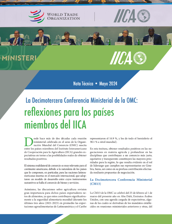 La Decimotercera Conferencia Ministerial de la OMC: reflexiones para los países miembros del IICA