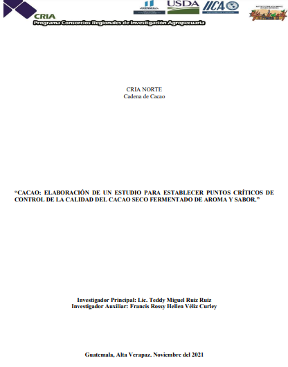 - Este estudio tuvo como objetivo diagnosticar los puntos críticos de control (PCC) en la producción de cacao fino de aroma en cinco asociaciones de pequeños productores de Alta Verapaz, Guatemala, para mejorar la calidad y consistencia del producto destinado a mercados internacionales. La metodología incluyó diagnósticos de campo, evaluaciones físicas y sensoriales de lotes de cacao, y análisis de protocolos de cosecha y postcosecha. Los resultados identificaron siete PCC clave (cosecha, recolección, trazabilidad, fermentación, secado, almacenamiento y transporte) que afectan la calidad, destacando la necesidad de estandarizar procesos y fortalecer capacidades técnicas para garantizar la consistencia del cacao.