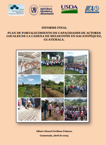 - El informe final tiene como objetivo presentar los resultados de los espacios de fortalecimiento de capacidades de los actores locales en la cadena de valor del melocotón en Sacatepéquez. La metodología incluyó diversas actividades de capacitación, como prácticas de escarificación y estratificación de semillas y control de plagas, talleres sobre establecimiento y renovación de plantaciones, cursos sobre utilización de organismos de montaña en preparación de bioinsumos y procesamiento de alimentos. Para cada una de ellas se contó con la participación de agricultores y otros actores de la comunidad, por lo cual se pudo concretar la transferencia de tecnología y conocimiento relacionados con el cultivo de melocotón.