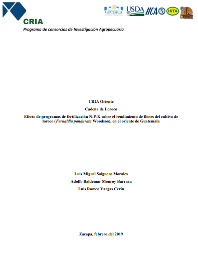 - Este estudio investigó el efecto de programas de fertilización N-P-K en el rendimiento de flores del cultivo de loroco en el oriente de Guatemala. La metodología se basó en experimentos de campo realizados en Zacapa y Chiquimula, aplicando diferentes combinaciones de fertilizantes. El objetivo principal fue determinar cuáles programas optimizan la producción de flores. Los resultados mostraron cómo las distintas fertilizaciones influyeron en el rendimiento, identificando las más efectivas para incrementar la cosecha de loroco.